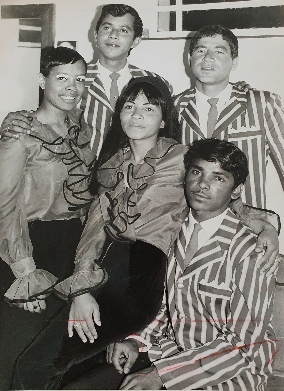 The Rockets vocal group, one of the most popular groups that came out of District 6 in the Sixties. [Elspeth Davids and Neesha Abrahams are the women, any help with naming the others would be appreciated.]
