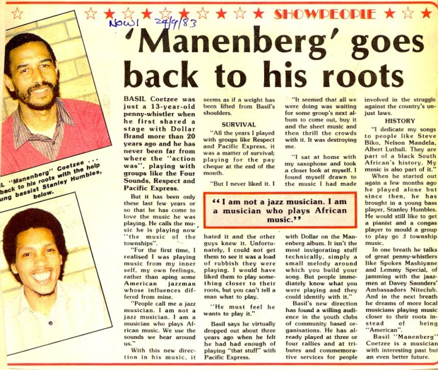 Basil ‘Manenberg’ Coetzee . . . a prophet way before his time