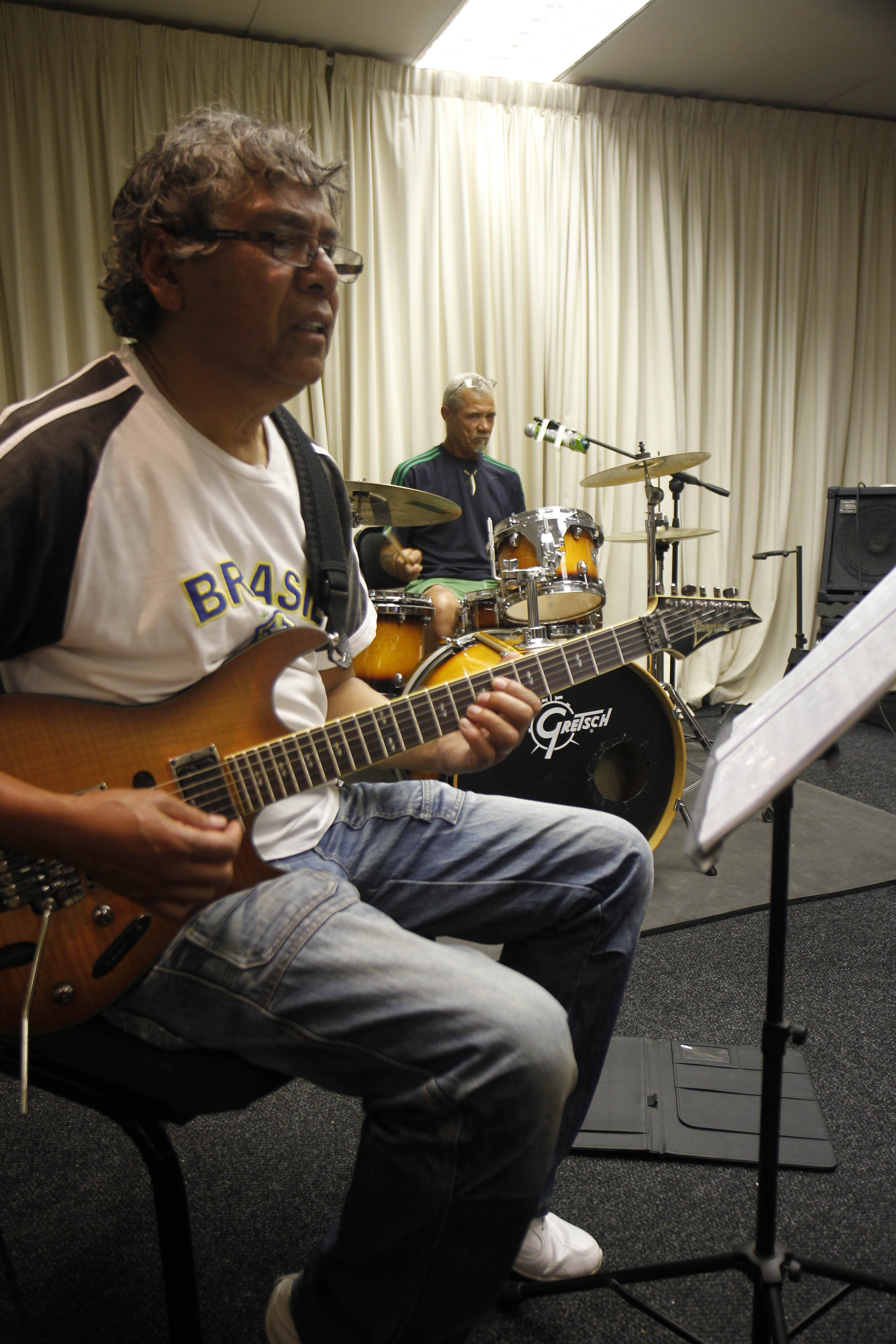 Rehearsing for the Big Daddy gig . . . from left, Clive Fester, Wayne Smith and Lawrence Paul Chetty.