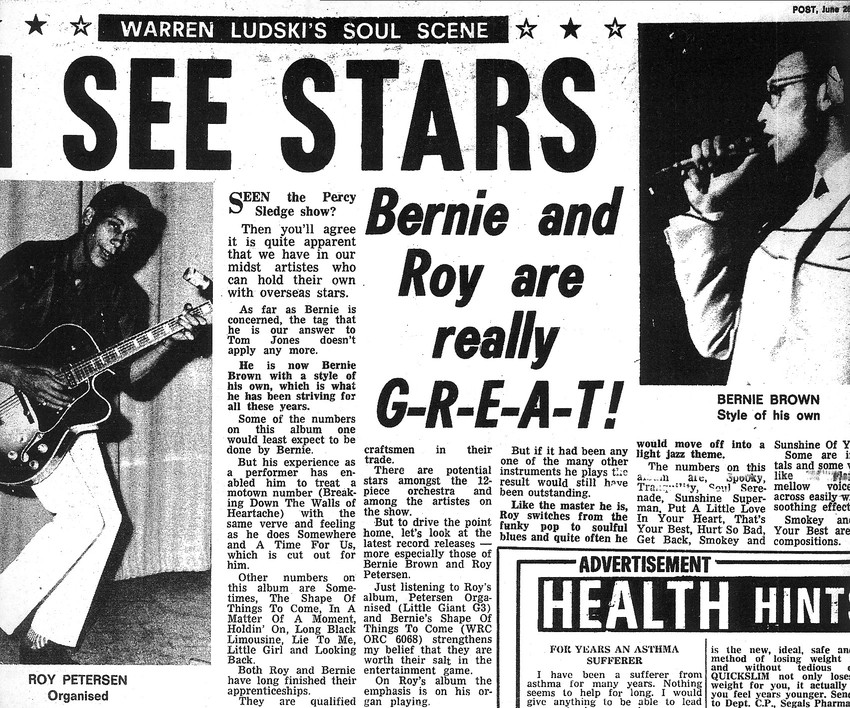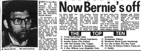 What happened? How come the name Bernie Brown doesn’t mean much in the new South Africa? How come it’s only those few who remember the Sixties who can relate to this fine performer?