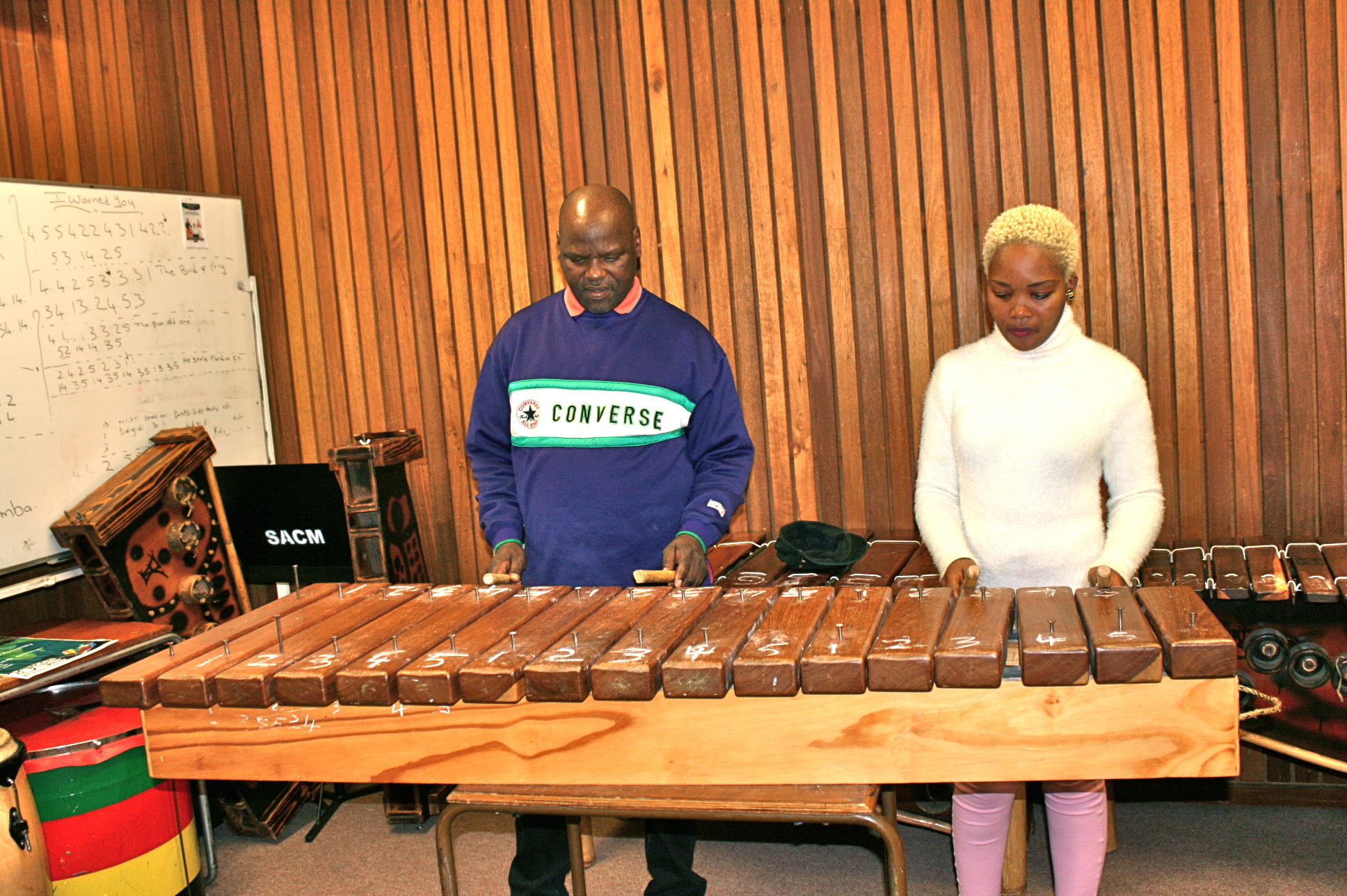 “I teach them music and then take them to Langa for some hands on work re-skinning drums and other activities.”