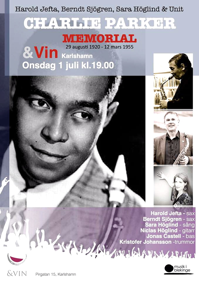 A poster advertising Harold Jefta’s Swedish group playing the music of legendary jazz saxophonist Charlie “Bird” Parker.